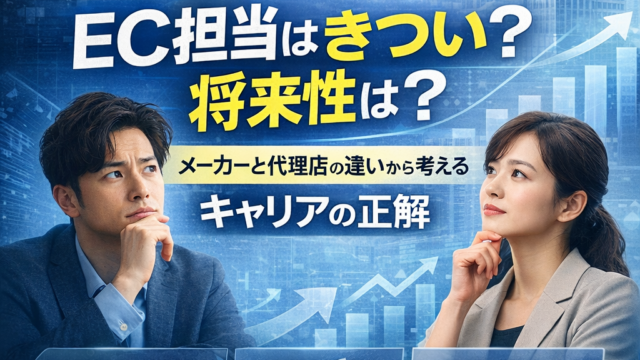 未分類 EC担当はきつい?将来性は?メーカーと代理店の違いから考えるキャリアの正解 EC担当の仕事内容や年収600万円の現実、メーカーと代理店の違い、きついと言われる理由まで実務経験者が解説。20〜30代がECを選ぶべき理由とキャリアの広がりを紹介します。 2026.02.14 未分類