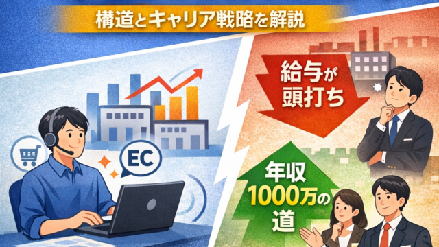 メーカーEC担当の年収が伸びにくいのはなぜか。スキル不足ではなく「メーカーという構造」に理由があります。年収1000万円を超えるルートやキャリアの選択肢を整理します。